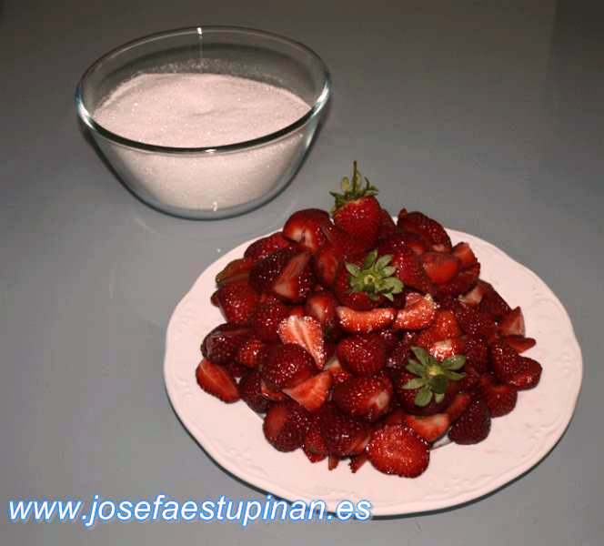 5. Pesa la misma cantidad de azúcar que de fresas.